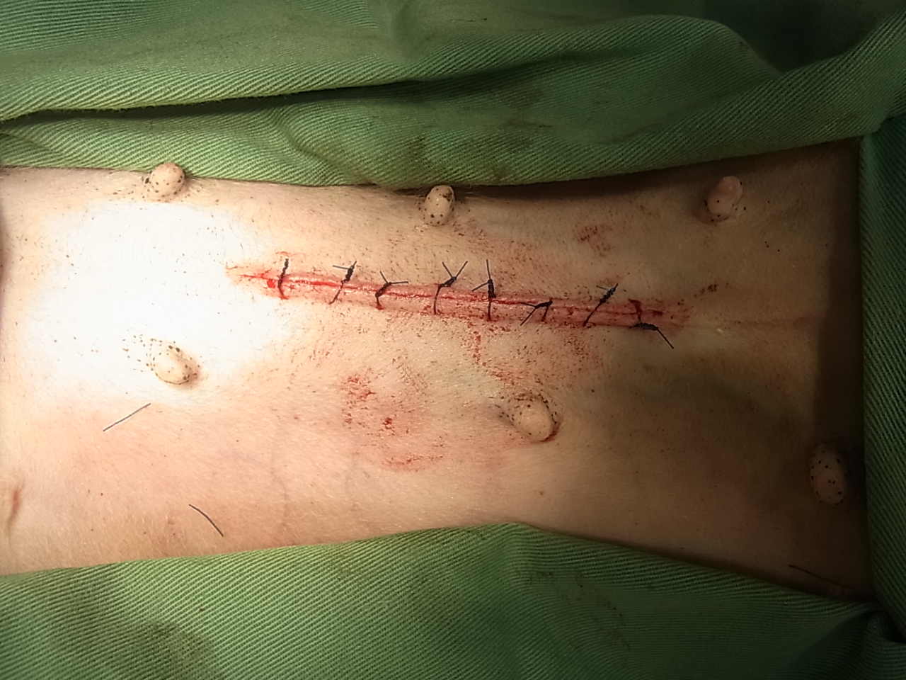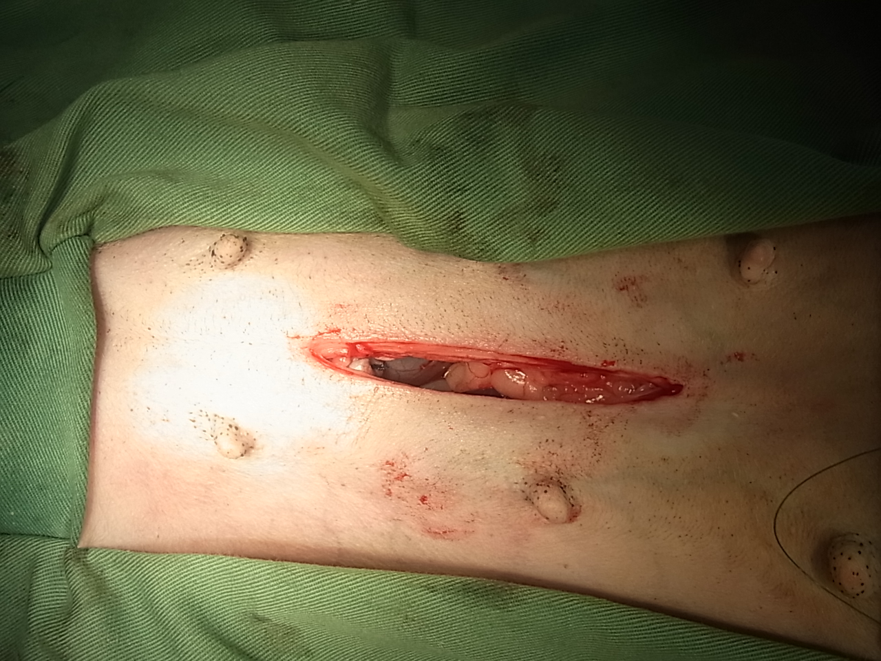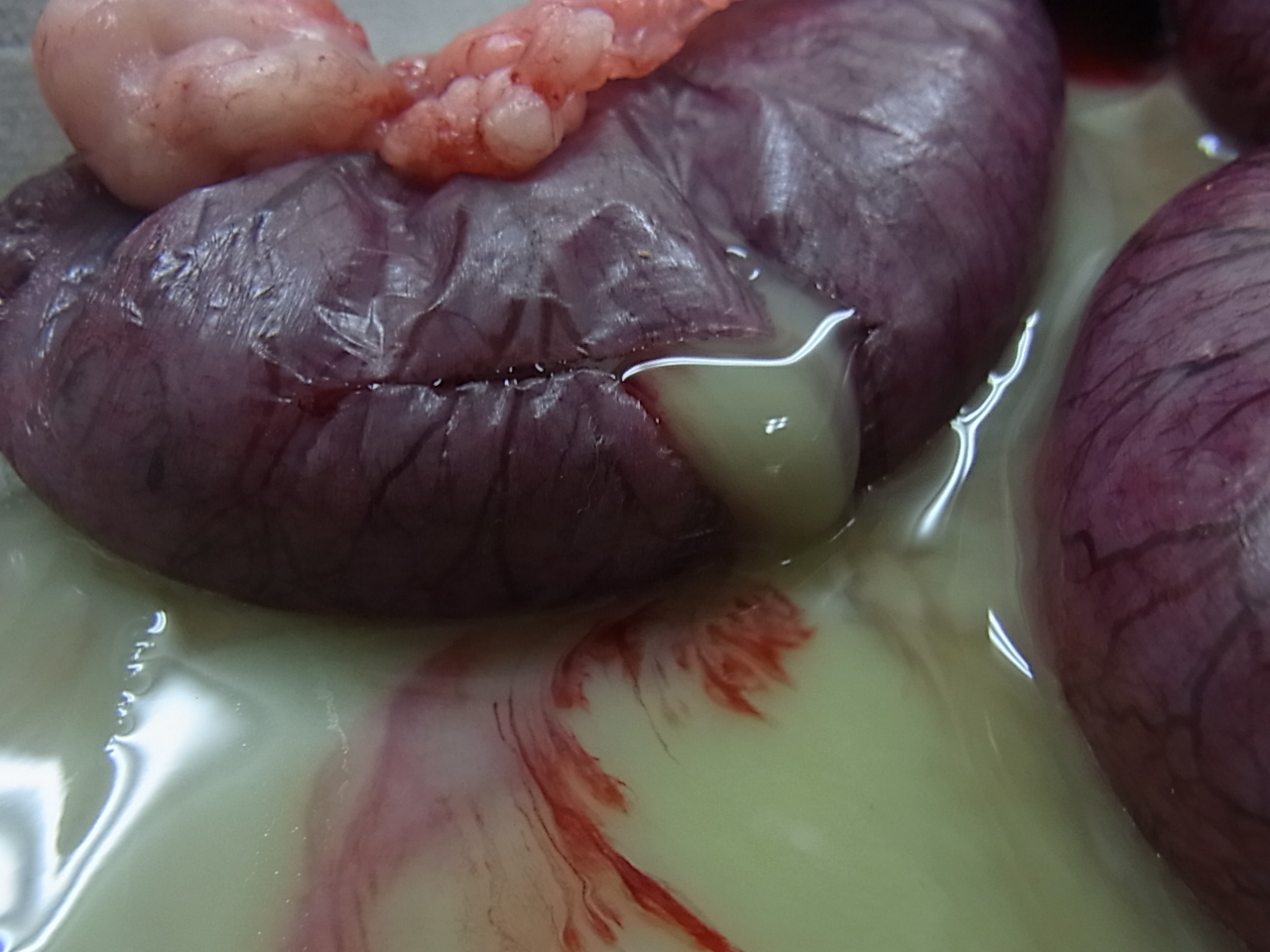 犬の子宮蓄膿症 最近元気がなく、食欲も落ちてきたとの事で来院しました。 陰部からは血膿が出てくる様子がありました。 血液検査では炎症反応が観察され、レントゲン検査および超音波検査にて子宮の拡大像を認めました。 オーナーに同意のうえ卵巣子宮摘出手術を実施しました。 ↑術野の確保 ↑腹部の切開し膨らんだ子宮が観察された ↑子宮の全貌 ↑子宮摘出後 ↑手術終了 ↑摘出された子宮 ↑子宮を切開すると中から膿が多量に出てきた