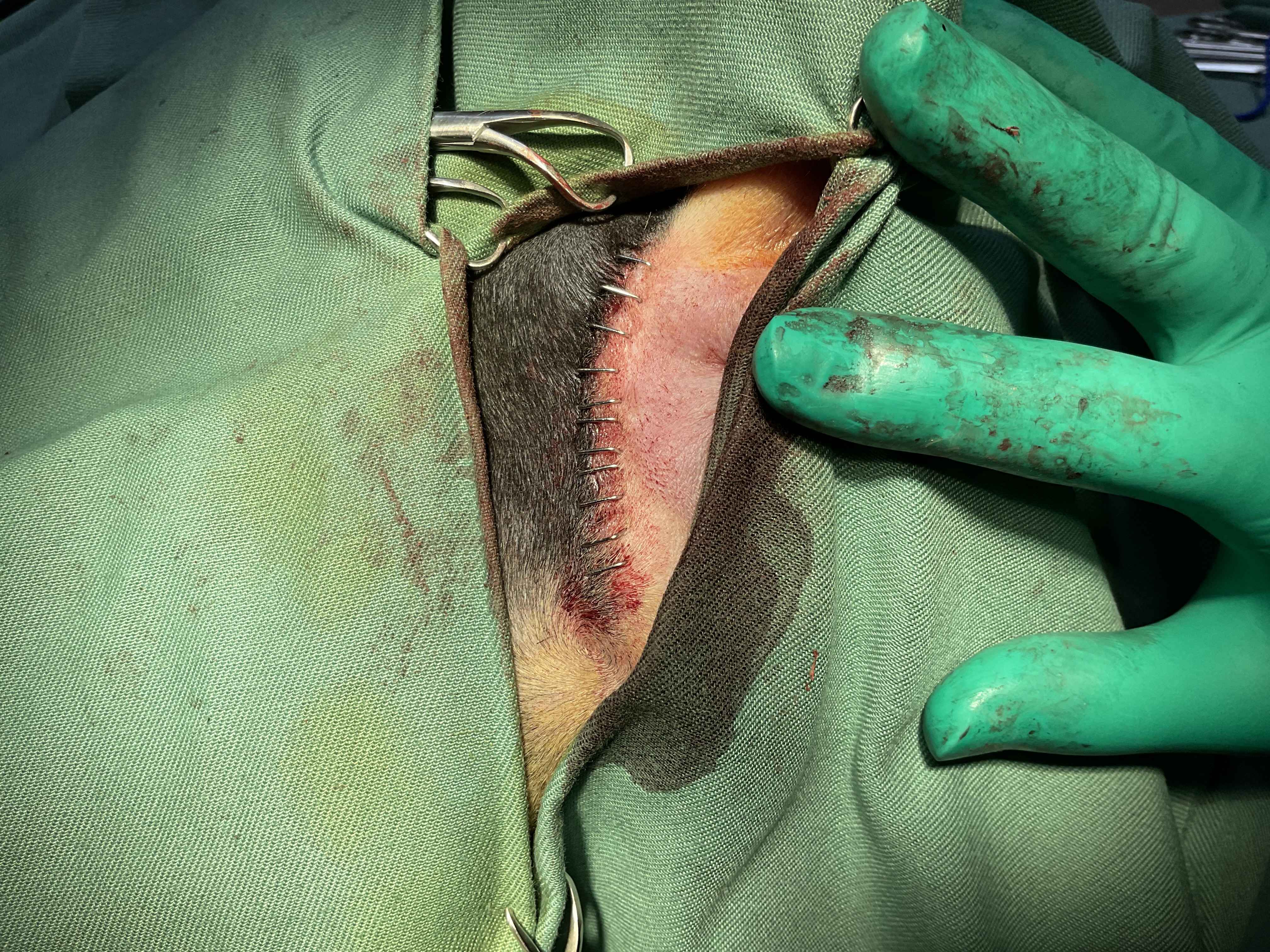 本疾患は未去勢が原因となる為、会陰ヘルニアの手術と同時に去勢手術も実施しました。
