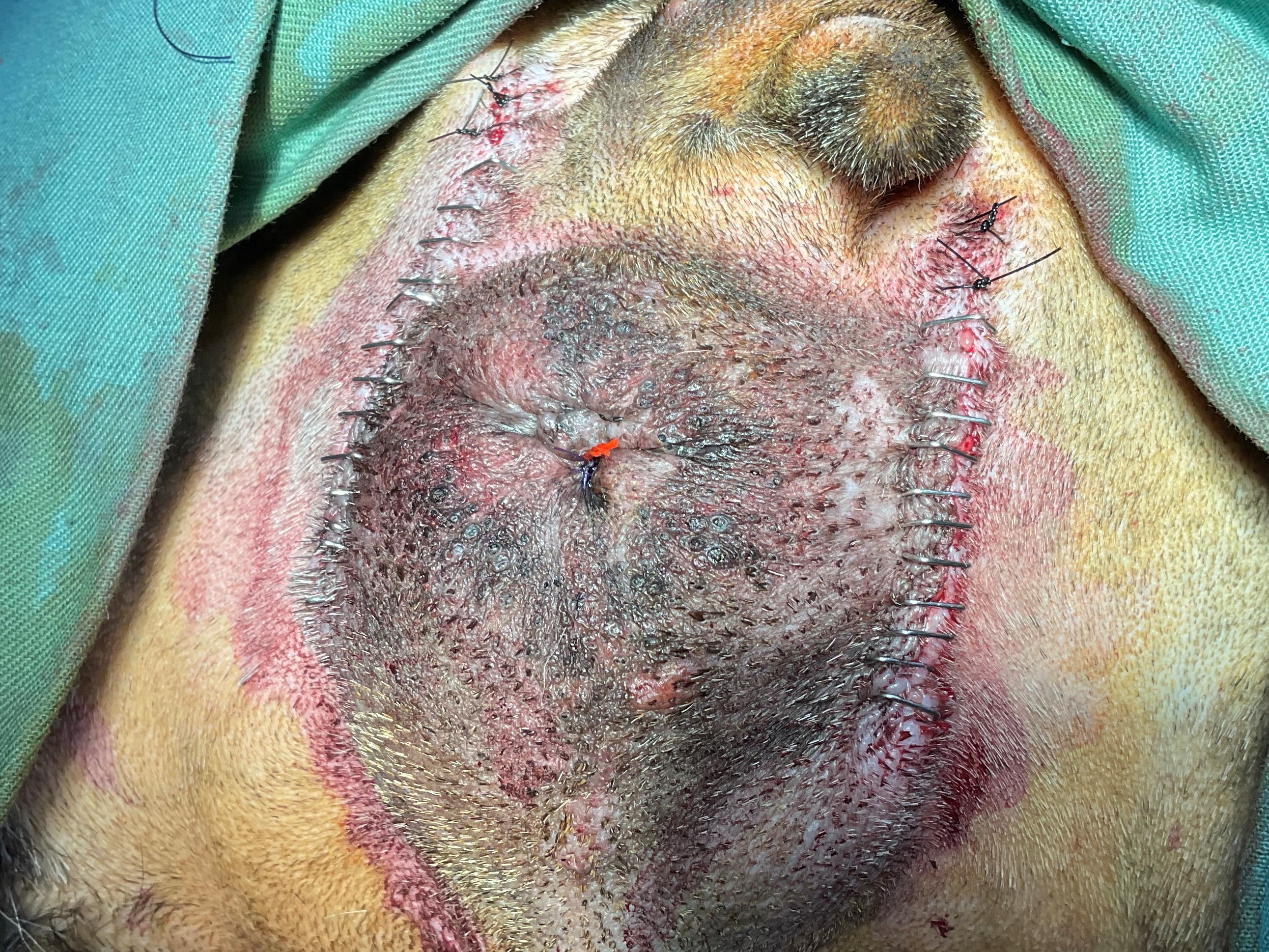 ヘルニアによって伸びてしまった皮膚は切除・整形し、縫合して終了
