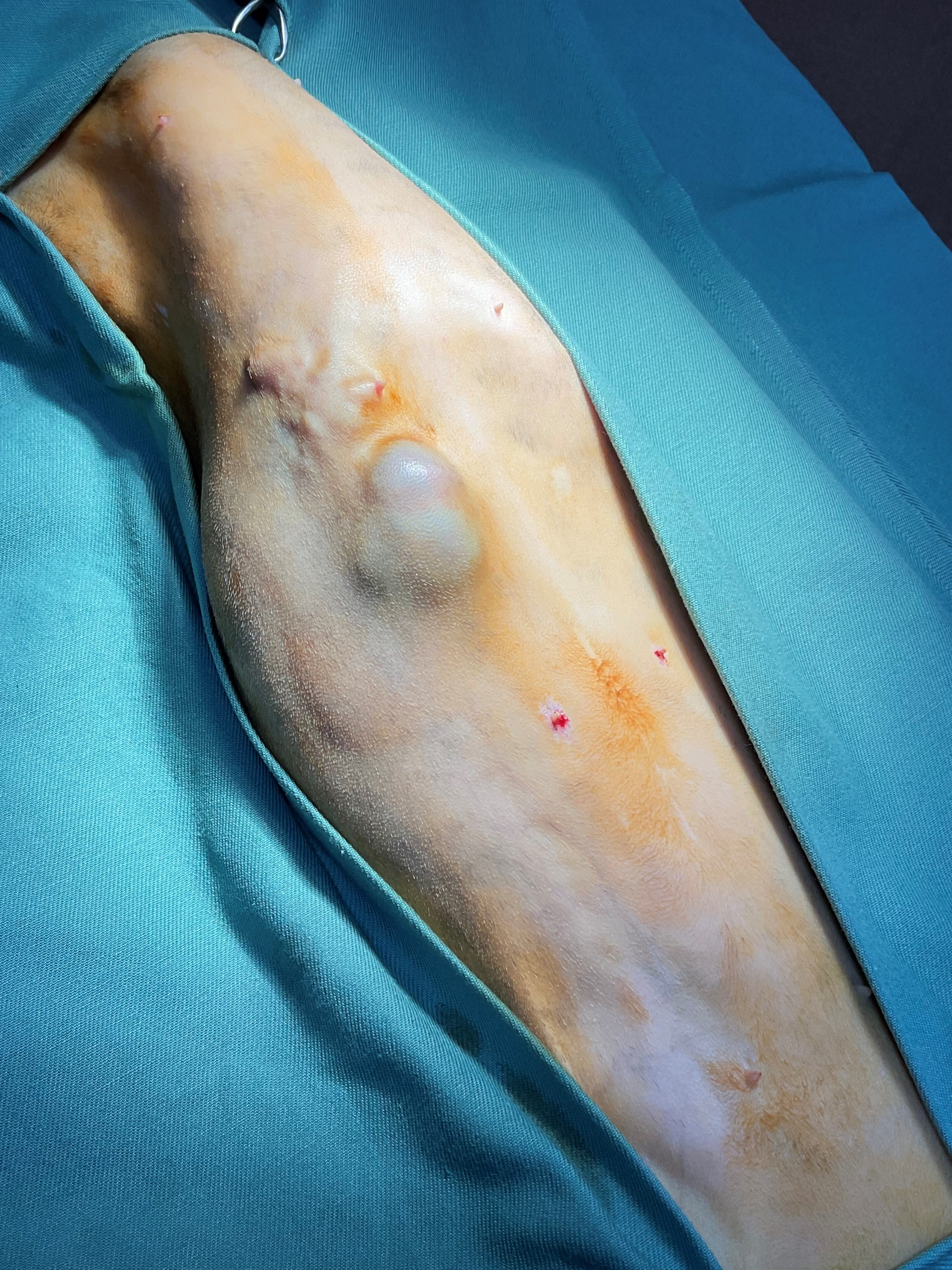 術野を確保し、画像中心に乳腺腫瘍があるのが確認できます
