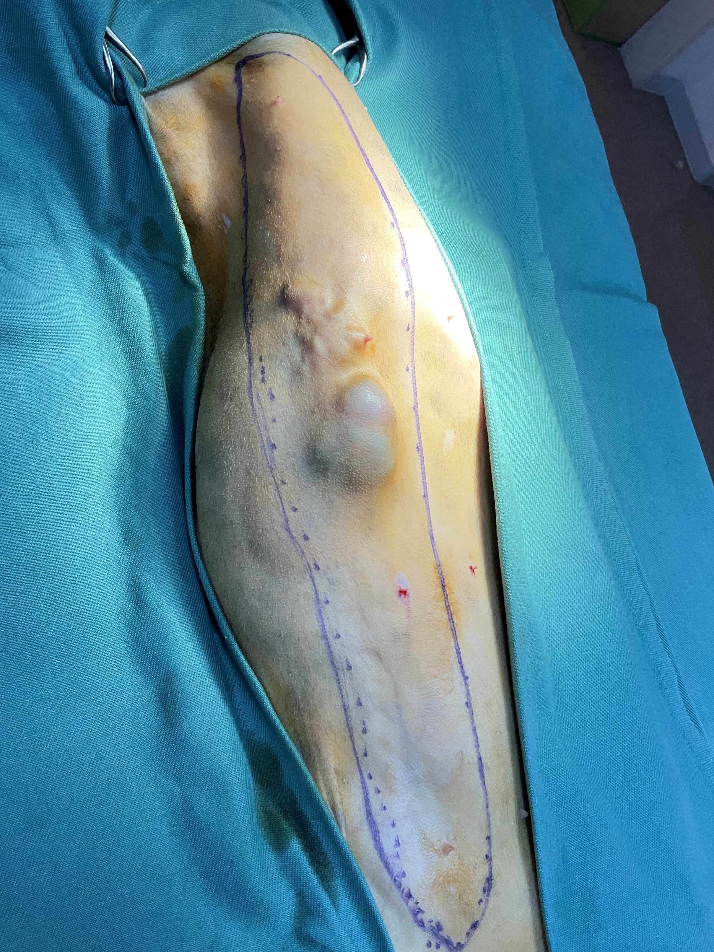 切開ラインをイメージしやすいようにペンで切除範囲を描きます
