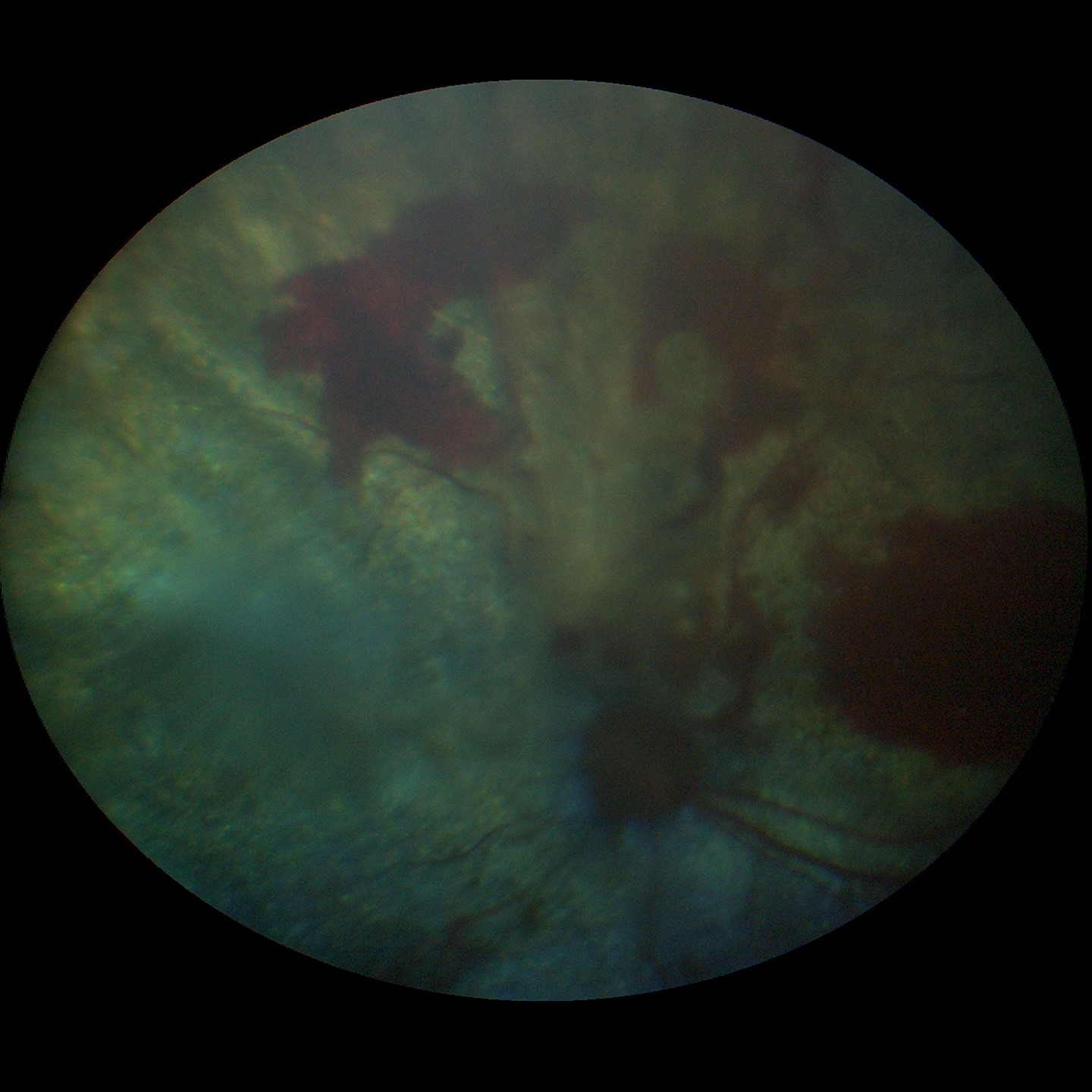 本症例は眼底出血のみでしたが、重症例では網膜剥離や出血に伴う緑内障などもみられます。